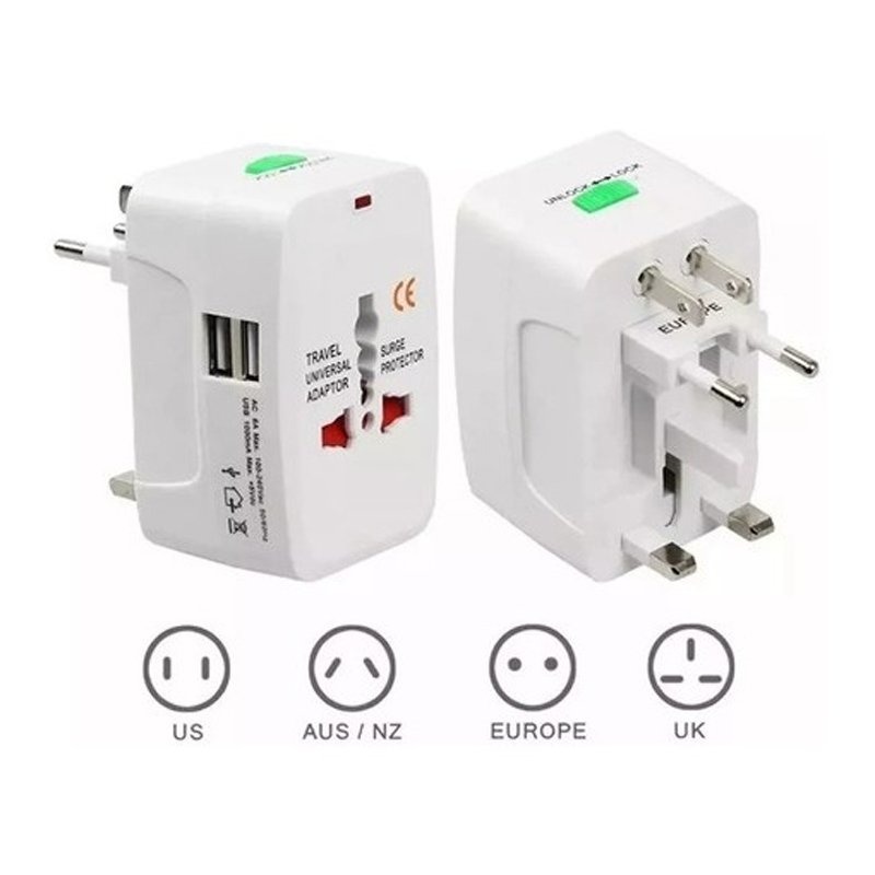 ADAPTADOR ENCHUFE UNIVERSAL VIAJERO CON 2 USB / W188