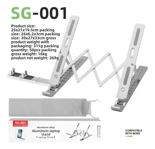SOPORTE METAL PARA NOTEBOOK TABLET PLEGABLE Y REGULABLE 20PULG SG-001