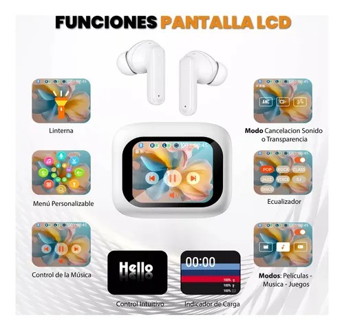 Auriculares Inalámbricos Bluetooth Pantalla Táctil Gamer Anc/DIGITAL DISPLAY HEADSET/LX-10/BLANCO