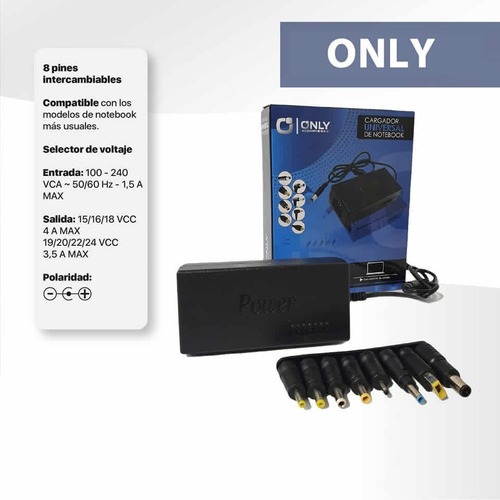 CARGADOR DE NOTEBOOK UNIVERSAL ONLY 8 PINES celeste 112403001
