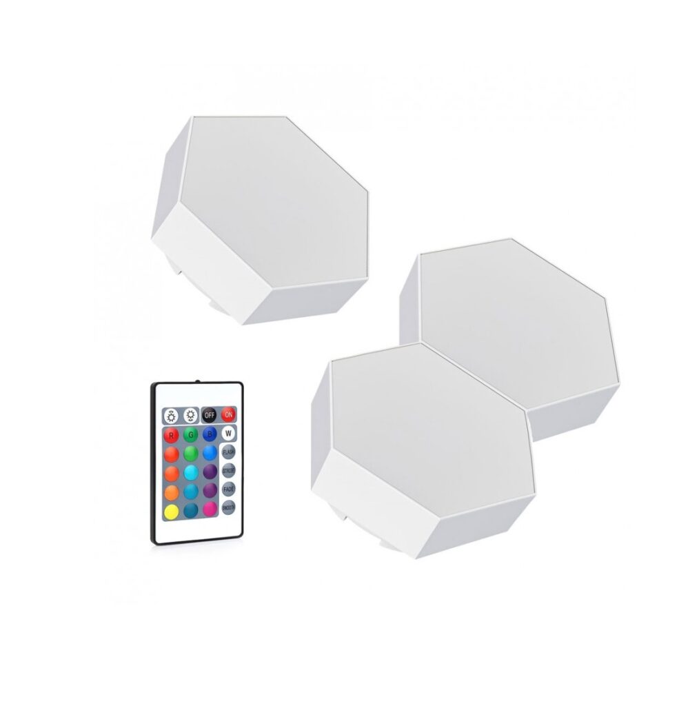 LAMPARA DE PARED HEXAGONAL X3 UNIDADES CON SENSOR TACTIL/CONTROL REMOTO A PILAS AAA SR359-3